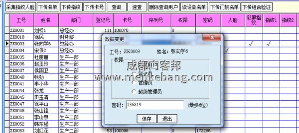如果想取消管理員,有2種方法。下面先介紹在考勤機(jī)上面刪除管理員的步驟。在考勤機(jī)上面刪除管理員,按按鍵“MENU”,選擇用戶管理,然后找到管理員的編號,在“權(quán)限”選擇項上,把“管理員”更換為 用戶。